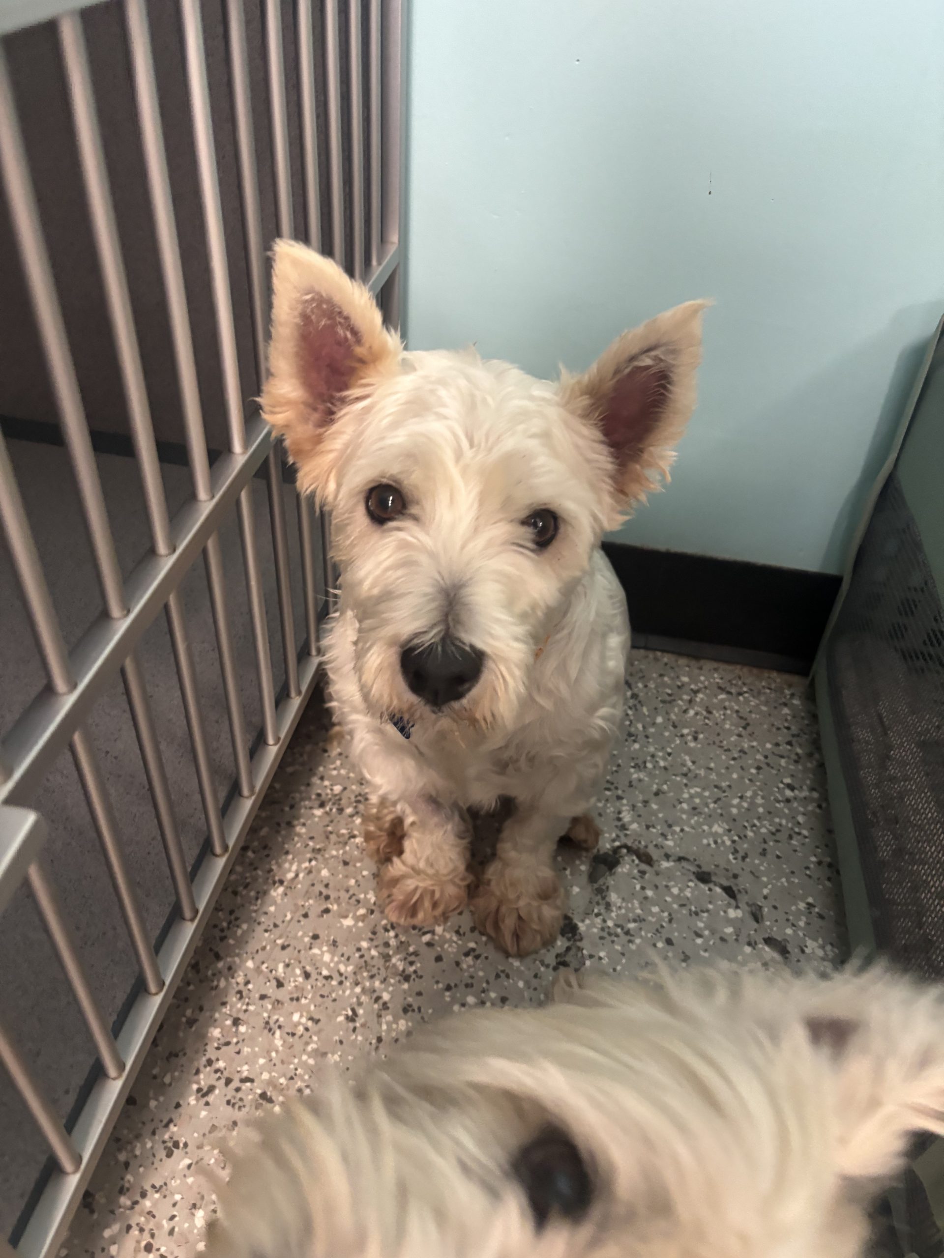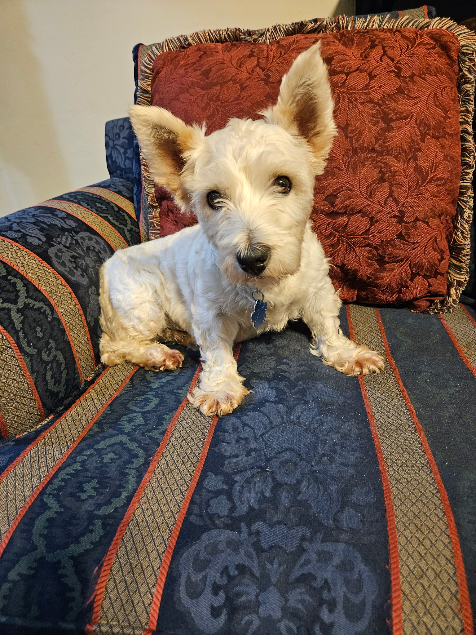 Meet Barbara Jane, a 4-year-old Westie with a heart full of love and a gentle spirit. This sweet girl adores snuggles, treats, and quiet companionship. She’s a bit nervous around mobility apparatus like walkers or wheelchairs, so it would be best if she avoided a home where those would be in use. With patience and understanding, Barbara Jane will blossom into a loyal, loving companion. Give this darling Westie the safe, happy forever home she’s been dreaming of—you’ll gain a best friend for life!