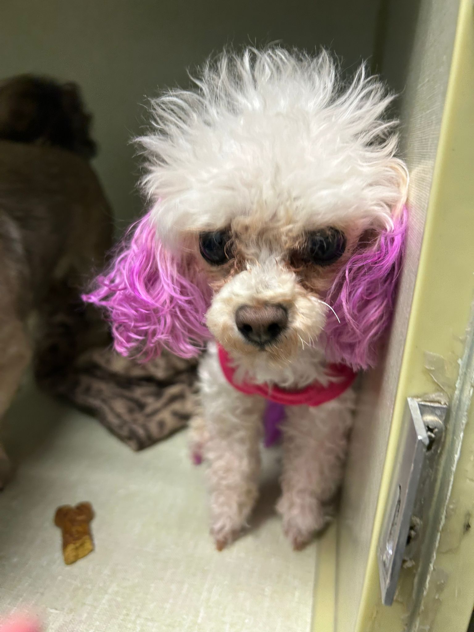 Bella Poo is a tiny 3-pound Miniature Poodle with a heart as big as her name is cute. Despite her petite size, Bella is full of sass, charm, and cuddly energy. She adores being carried, pampered, and snuggling into soft blankets. Bella Poo would be the perfect companion for someone looking for a loyal lap dog with a gentle personality. She does best in a calm, quiet home where she can feel safe and adored—just the way she deserves!
