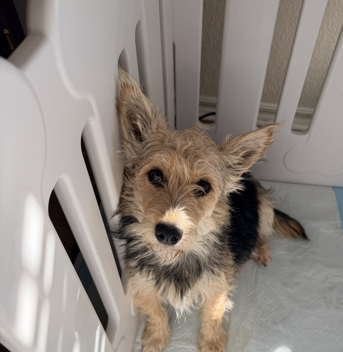 Billie is house broke, crate trained, dog-friendly, loving, loves to cuddle, good on a leash, good in a car, has to have fenced in yard, and is kid friendly but prefers older & calmer kids.