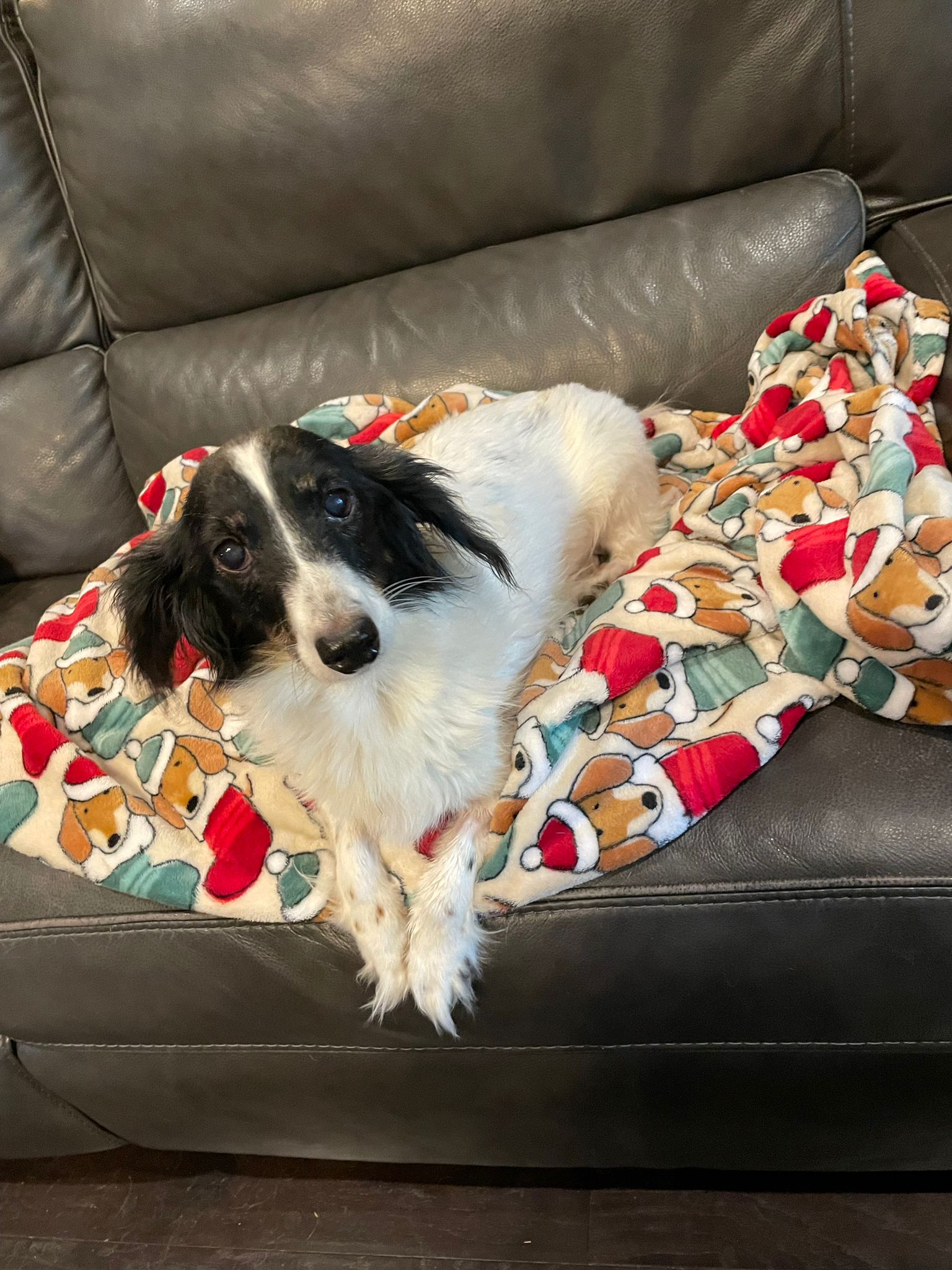 Boo Boo is a lovable, 13 pound Dachshund with a big personality and an even bigger heart. With her long body, short legs, and expressive eyes, she charms her way into every lap and every heart. Playful, clever, and a little bit stubborn, Boo Boo knows exactly what she wants—and how to get it. Whether she's burrowing under blankets or trotting proudly on her tiny paws, Boo Boo brings warmth, laughter, and endless affection to all who know her.