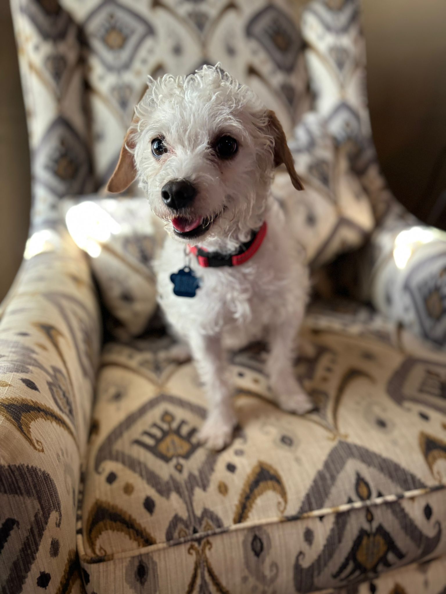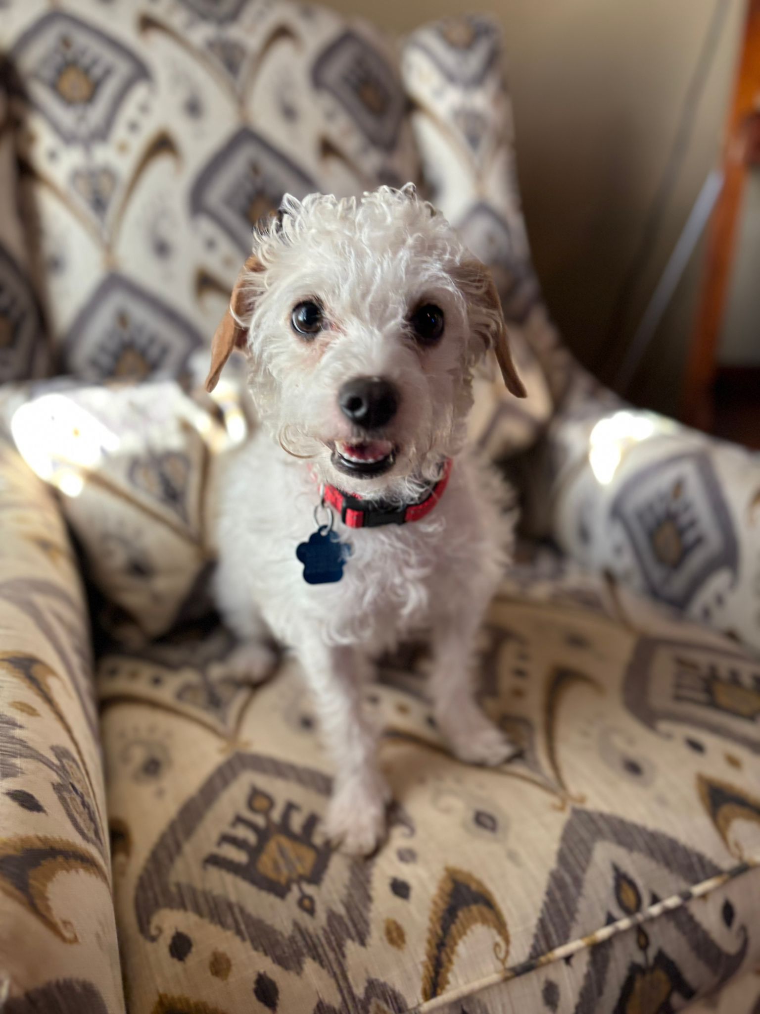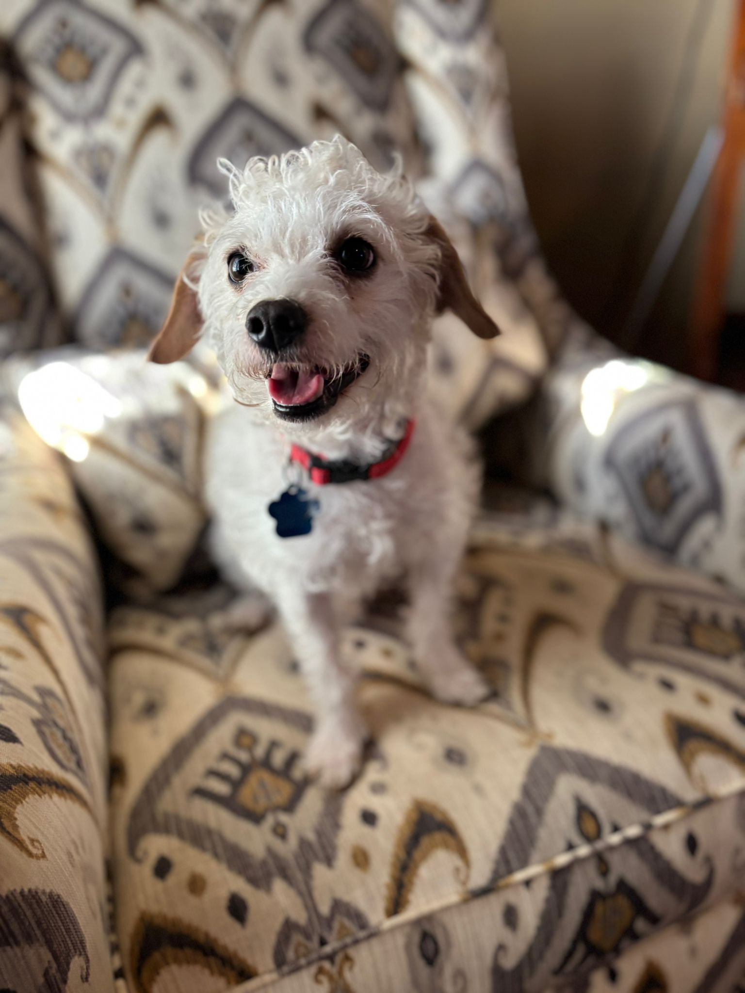 Buddy the Elf is a friendly, 12-pound terrier/poodle mix. He is potty trained and great on a leash. He is active and loves the great outdoors so would do well with a dog friend or an active family.