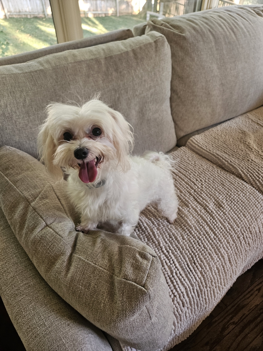 Meet Wildcat, a 5-year-old Maltese with a big personality packed into a tiny body. She’s confident, cuddly, and just a little sassy—exactly how she likes it. Wildcat adores her humans, enjoys cozy naps, and struts proudly on her walks. If you’re looking for a loyal lap companion who brings laughter, love, and a touch of diva charm, Wildcat’s your girl.