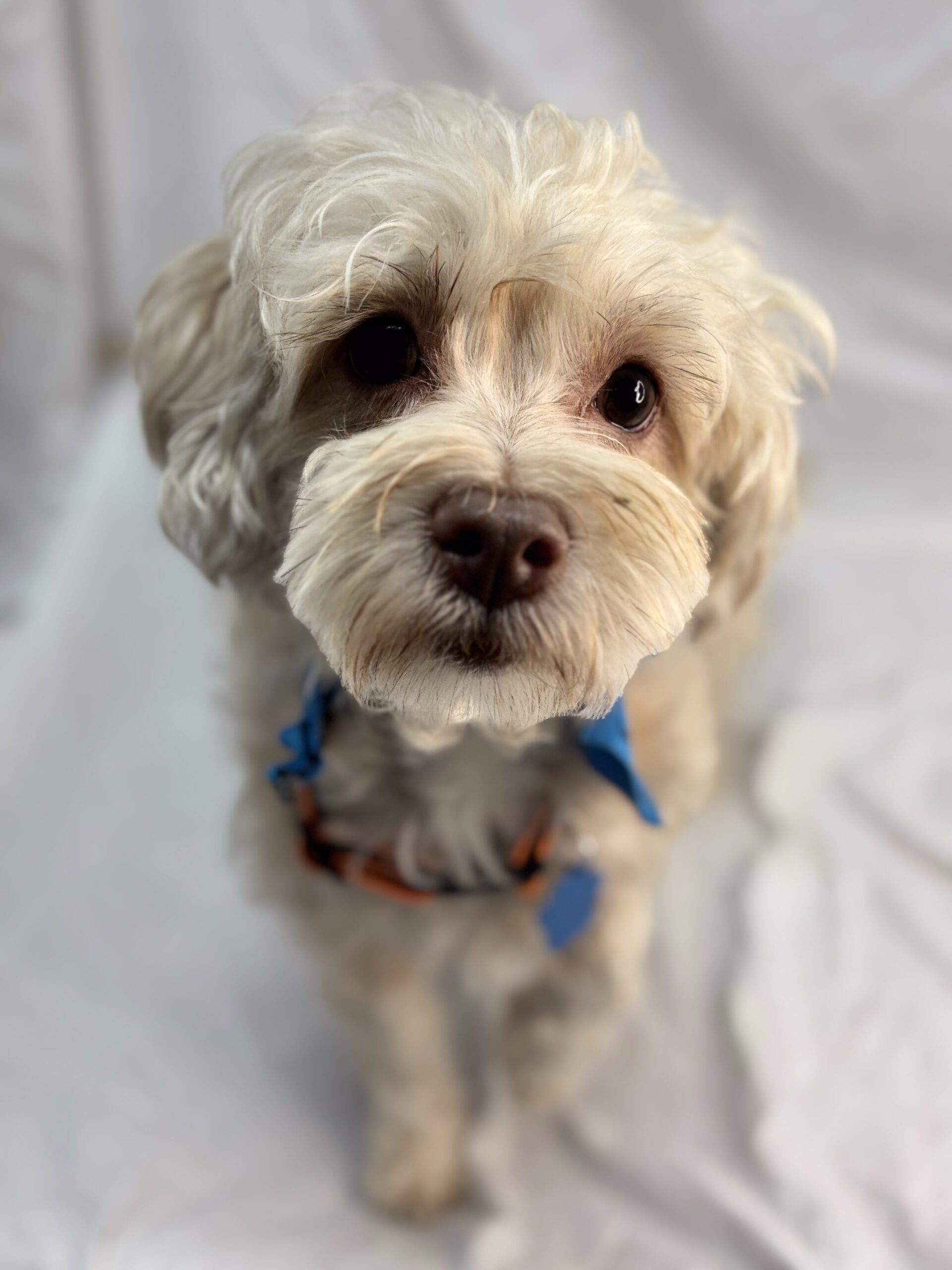 Moo is a 2-year-old, 12 pound Maltese-Yorkie Mix. He is a playful boy who loves his walks! He is excited to meet his new family.
