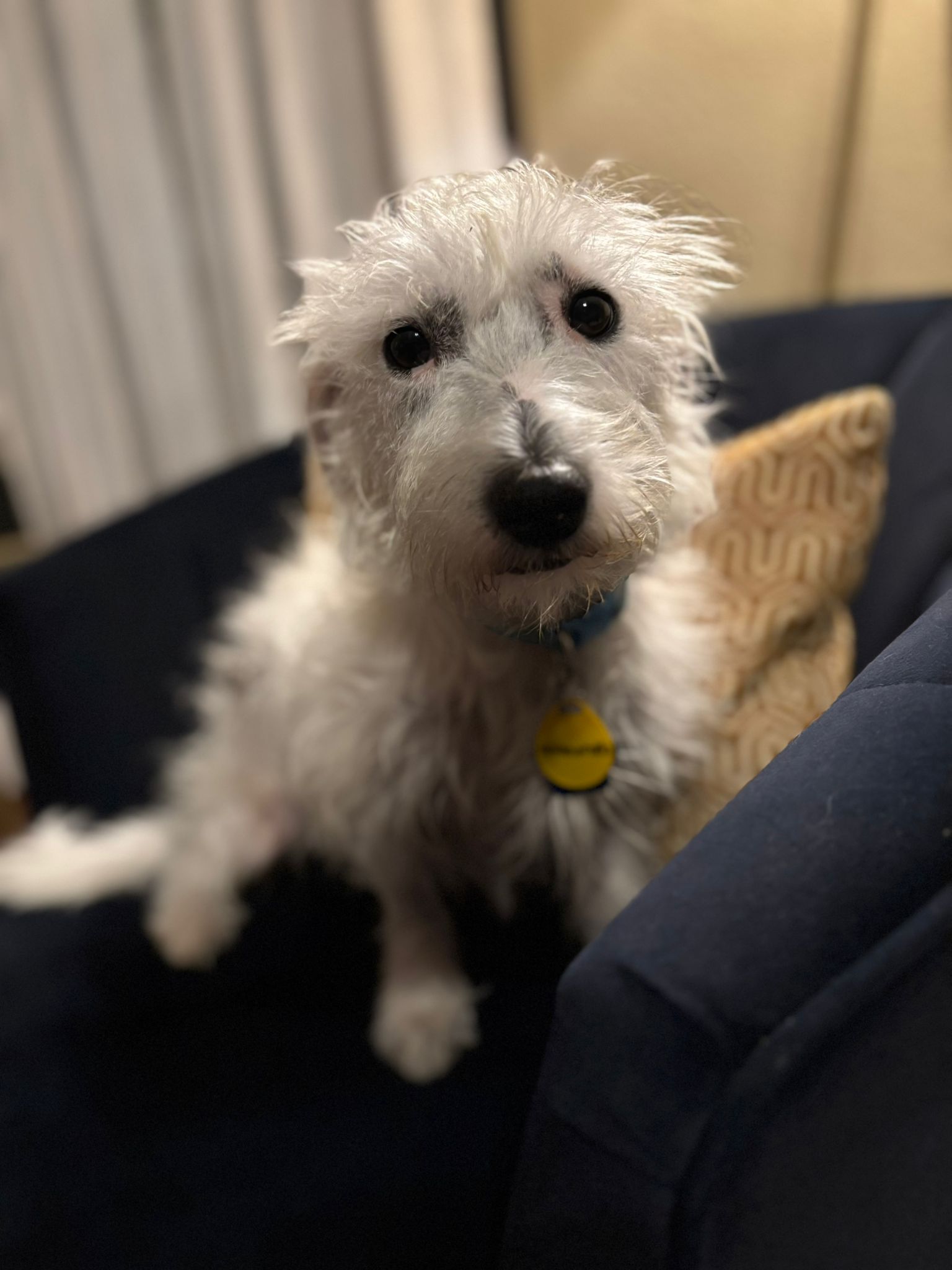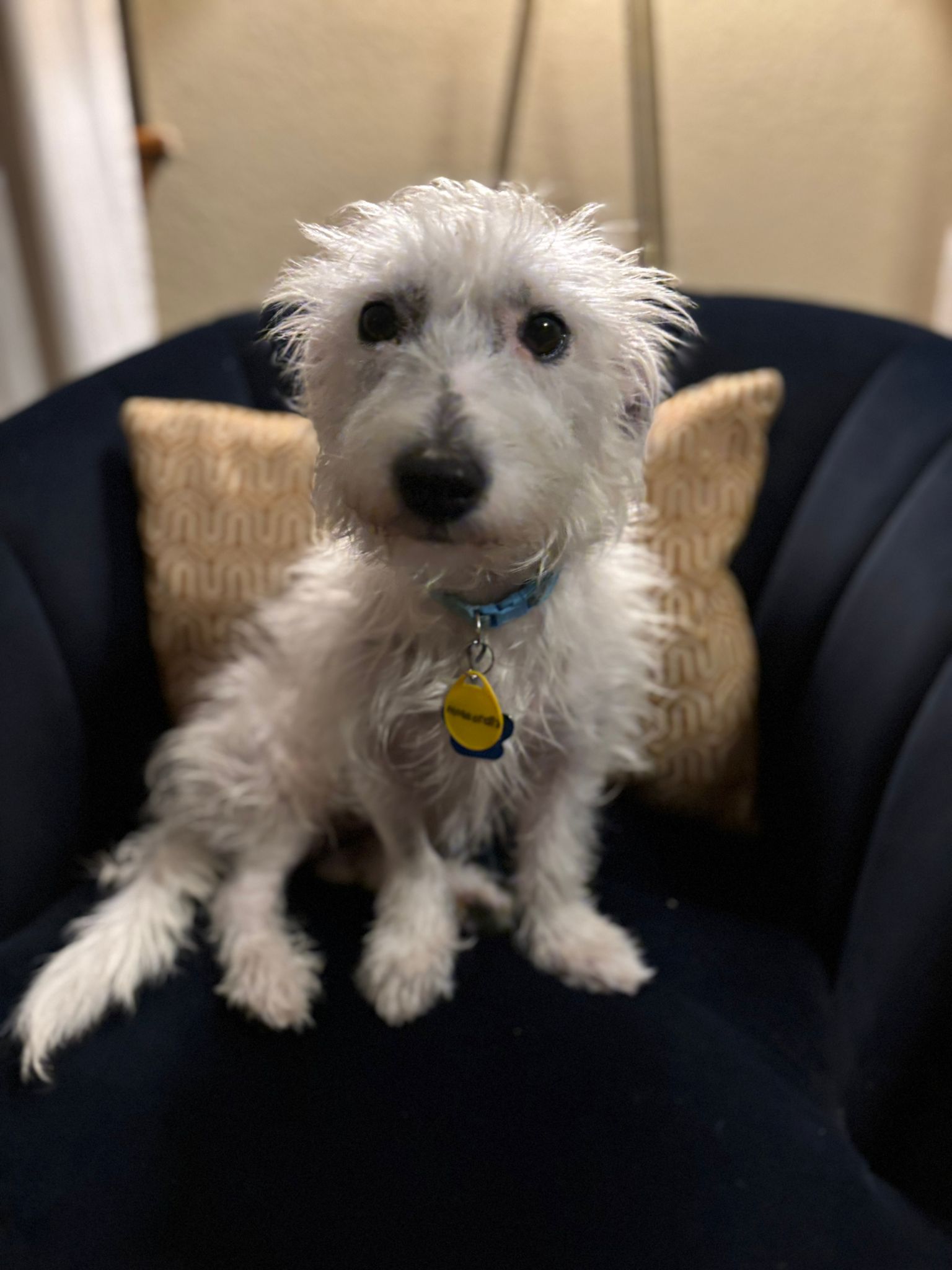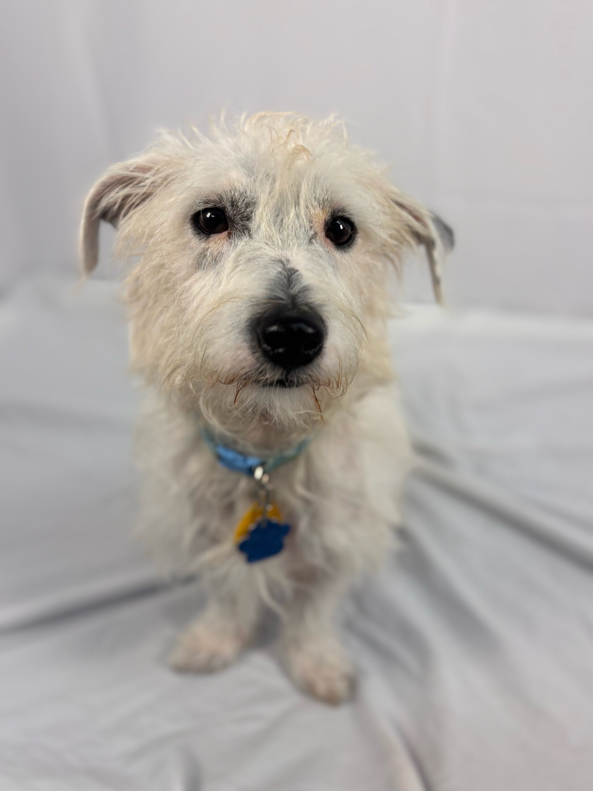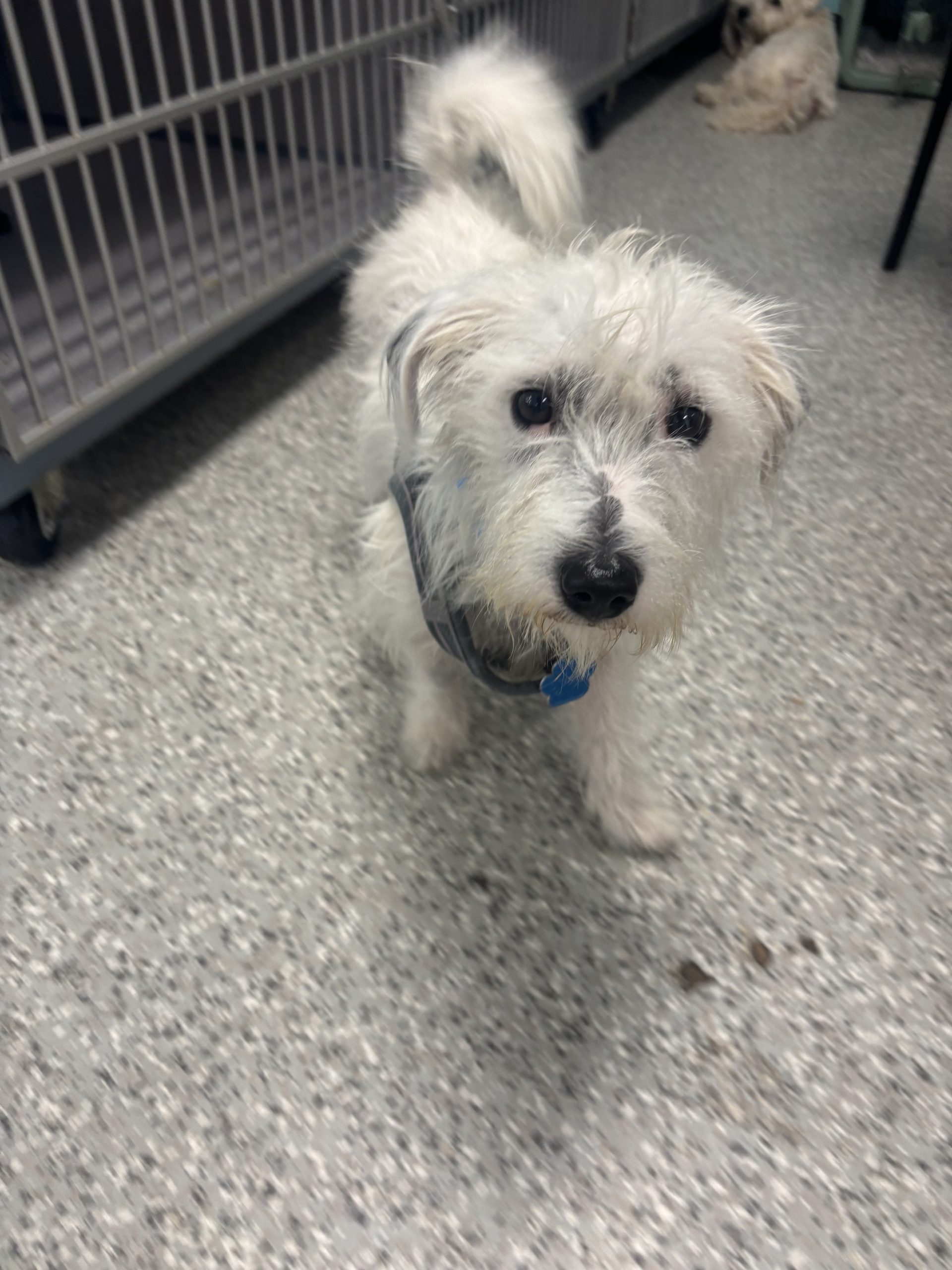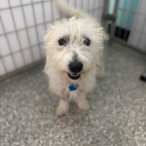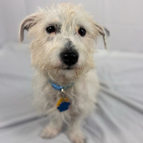 Mozzarella is a 2-year-old, 18 pound Westie mix. He is a perfect mid-level energy dog. He likes to go for walks and play with dog friends, but is also happy to hang out on the couch and relax. He is a little shy at first, but give him a treat, and he will be your best friend, following you around with a wagging tail and lots of kisses. He is crate trained.
