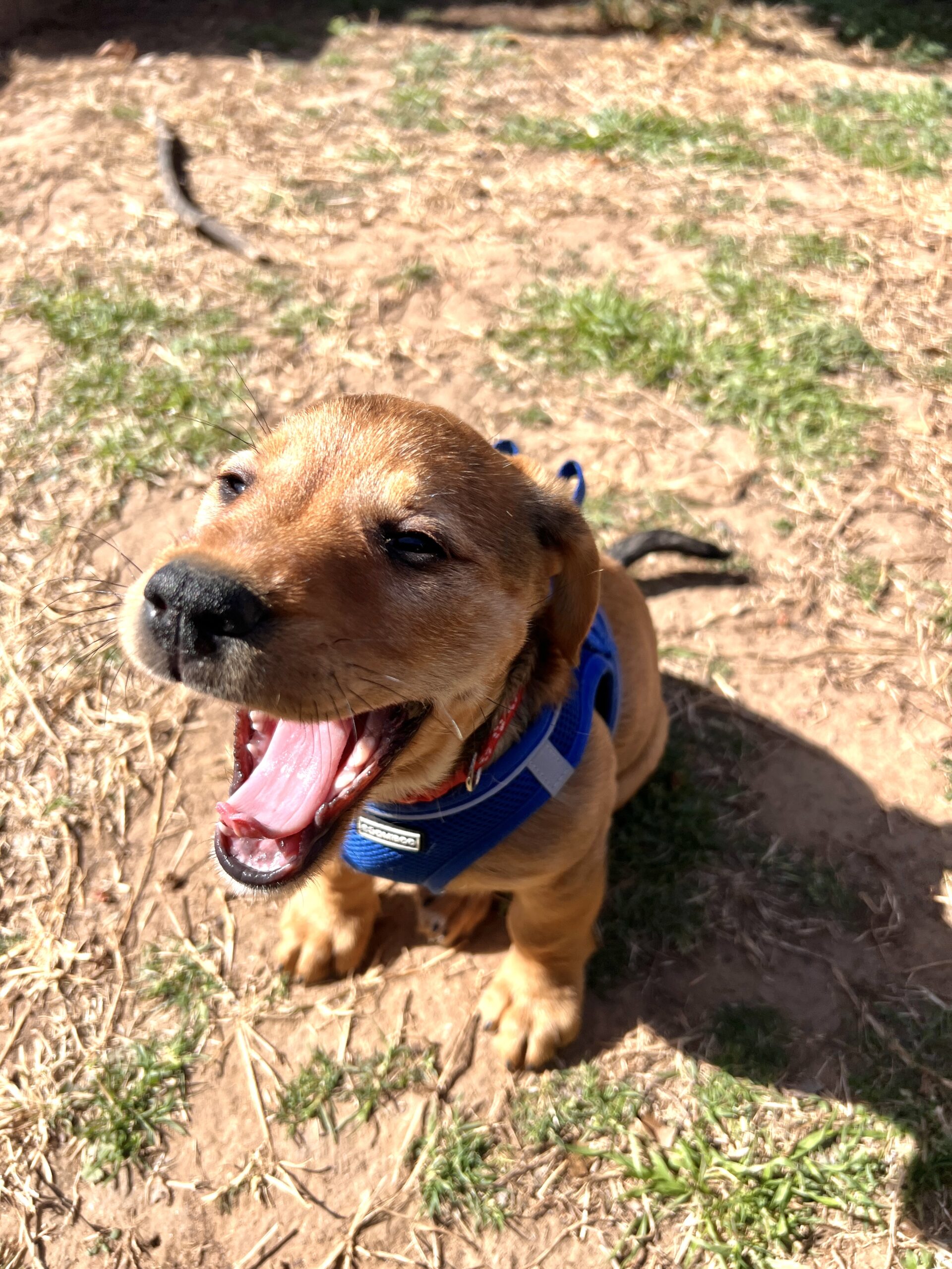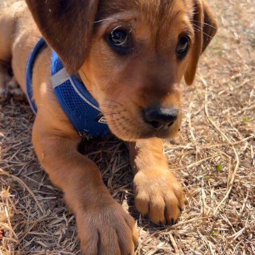 He enjoys walks, playing, sleeps in a pen at night, is potty-trained, and is so sweet with EVERYONE! He is the perfect pup.