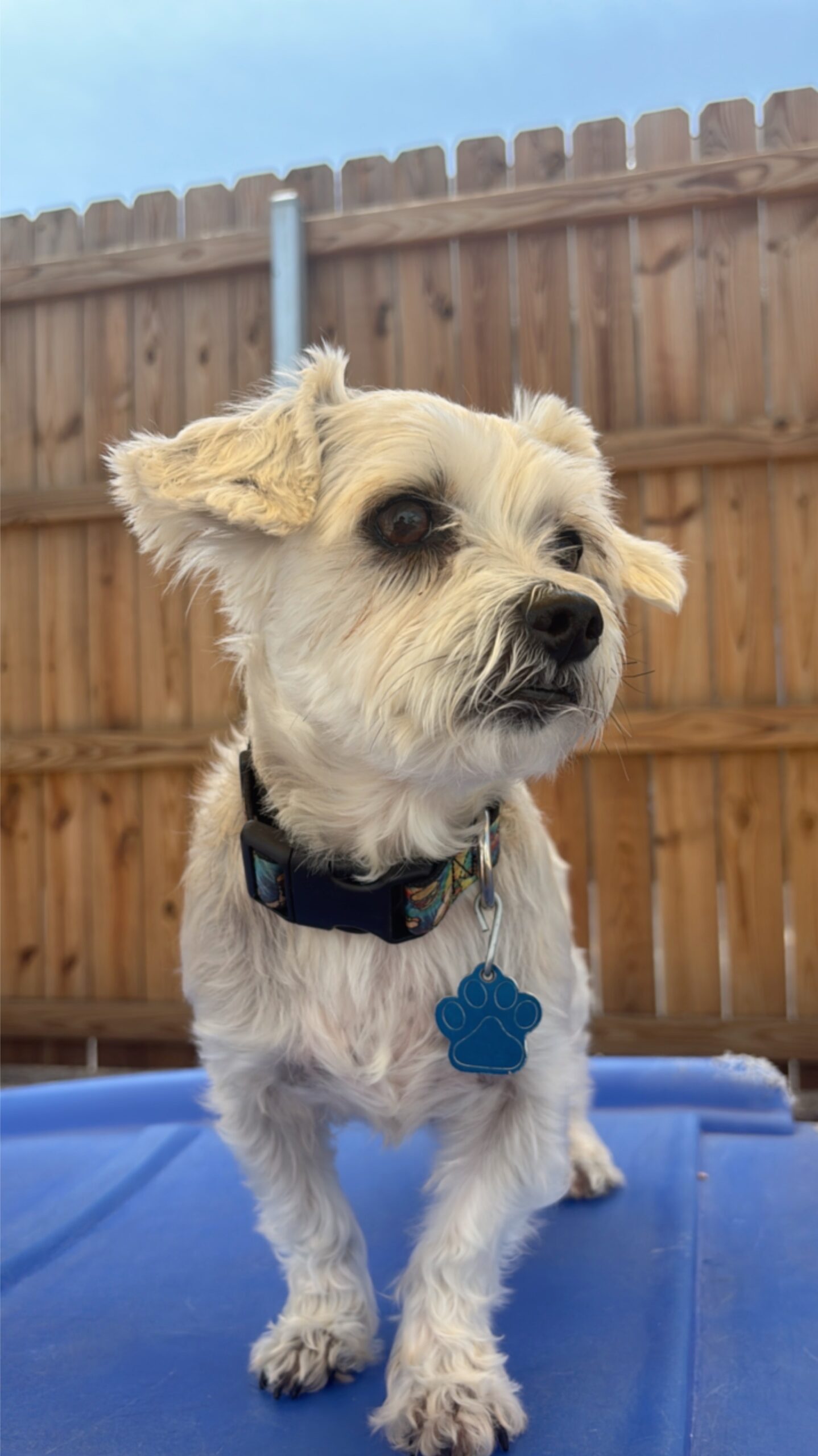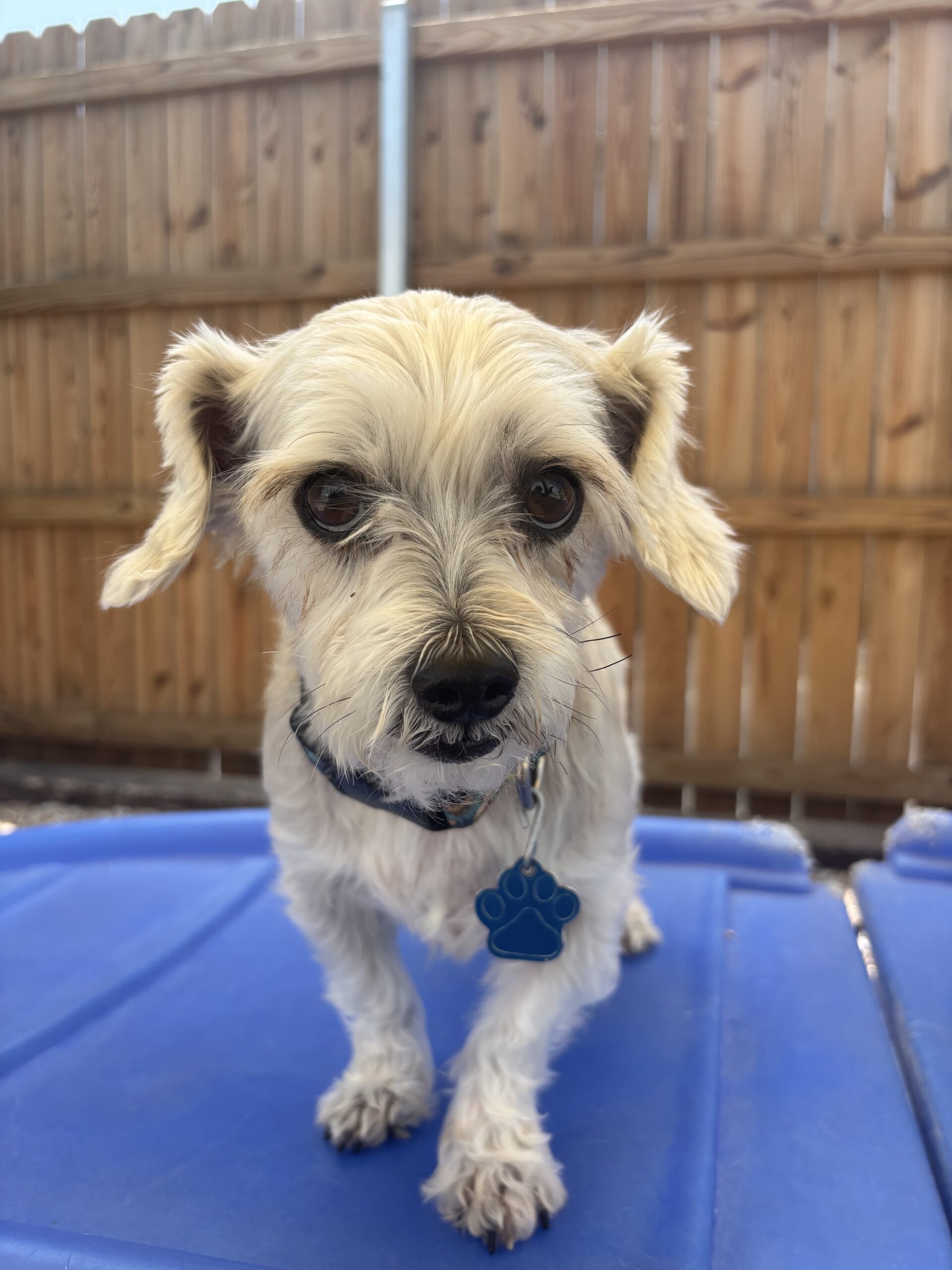 Uranium is a cute little 7-year-old Shih Tzu Maltese mix who weighs 12 pounds. He is white and silver and has been shoved down to remove the matting. However, his beautiful coat will grow out soon in all its glory. Uranium does well with other dogs of all sizes, as well as cats. He is crate trained and fully housebroken. He prefers to sleep in a dog bed or on furniture if allowed. He loves to go outside and lounge in the sun. While you’re gardening, he loves to sunbathe and watch you work. Uranium also does great in a shopping cart and loves to accompany you to Lowe’s or whatever store allows pets.